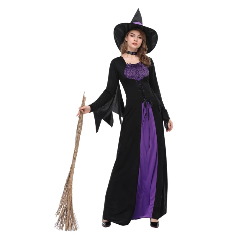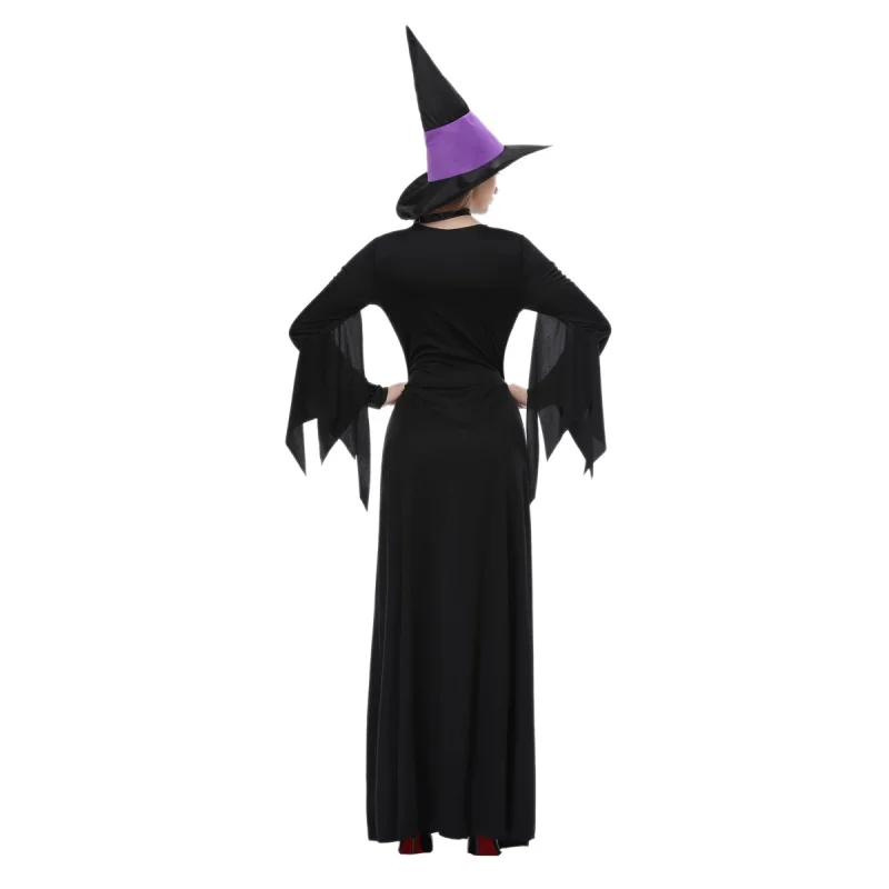 Offerte Meilleur Femminile di Halloween Strega Plus Size Abito Lungo Cosplay Costume Autunno Inverno Vestiti Da Partito con Pettorina E cappello 1 set 2018 Economici Prezzo Online.