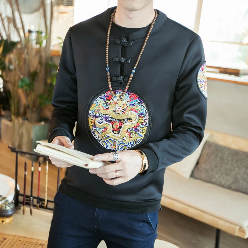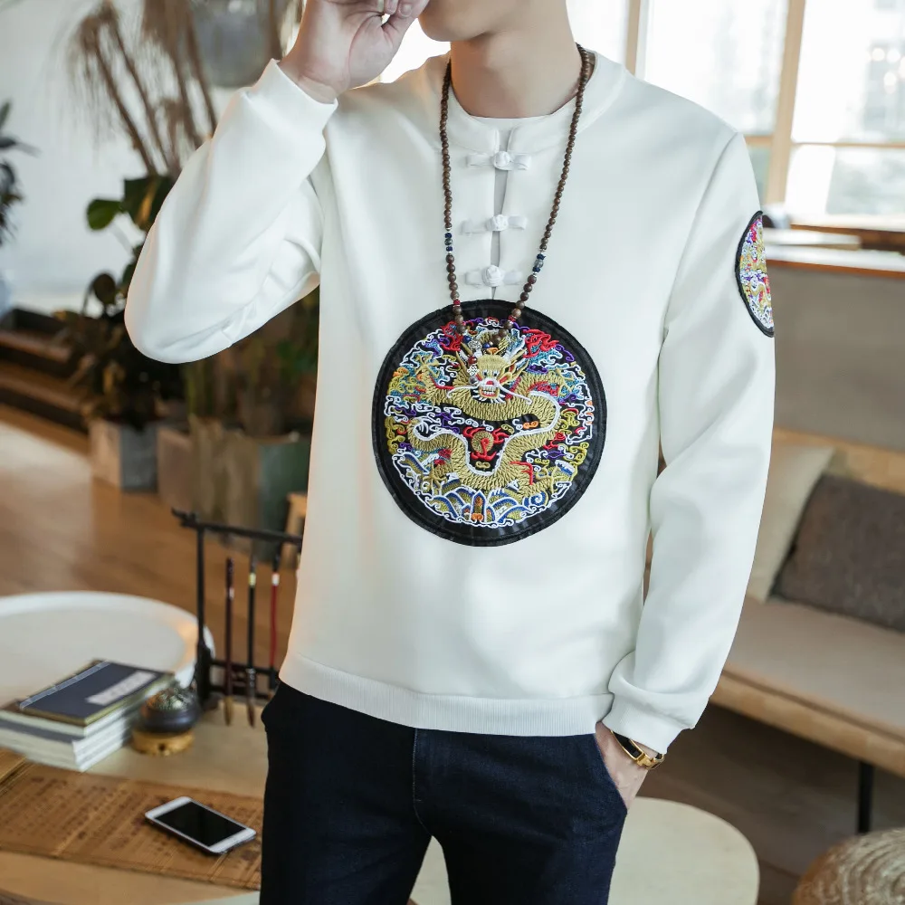 Offerte Meilleur New Spring Felpa Da Uomo Pan Kou Stile Cinese Mens Hoodies Casuali Rotonda Collare Plus Size Ricamo Pullover Vestiti di Pista 5XL M Economici Prezzo Online.