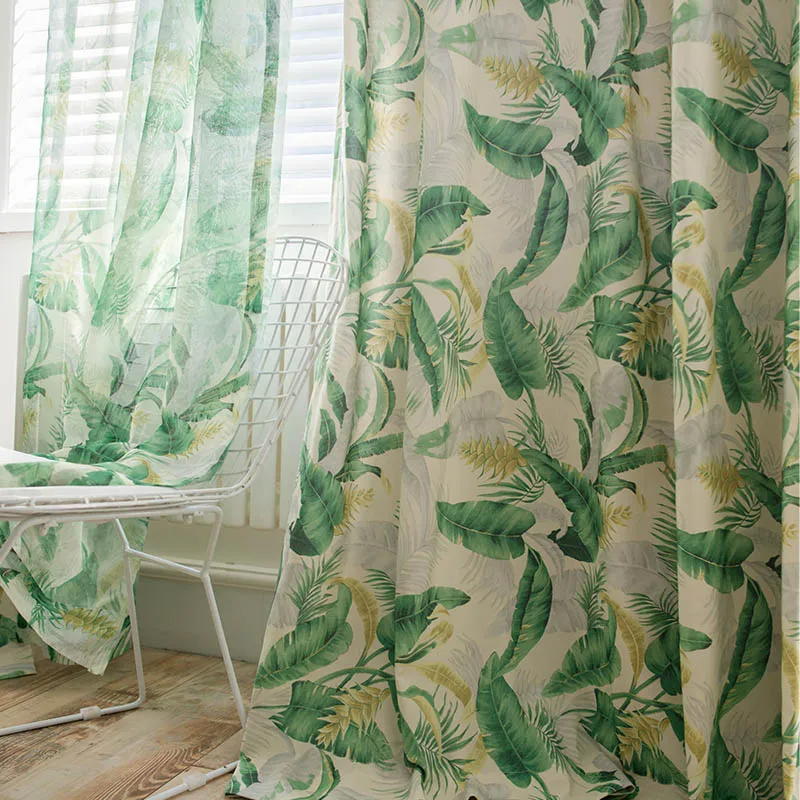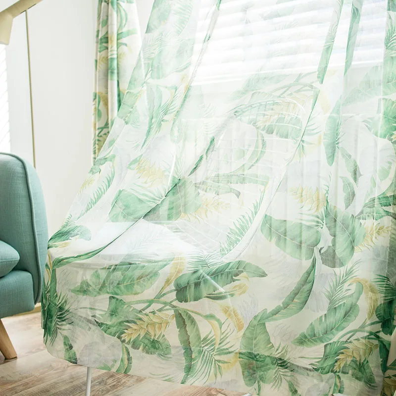 . Offerte Americano di Cotone Stampato Tende per il Salone Verde Foglie di Banano Tulle Velo Fodera Cortinas per la Camera Da Letto Dello Schermo Singolo Pannello Economici Prezzo Online.