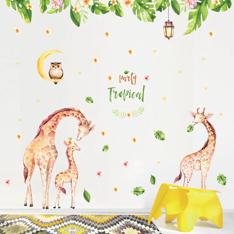 Offerte Meilleur Grande formato del fumetto giraffa festa di famiglia adesivi murali per soggiorno camera da letto art home decor removabel parete del vinile decalcomanie dc18 Economici Prezzo Online.