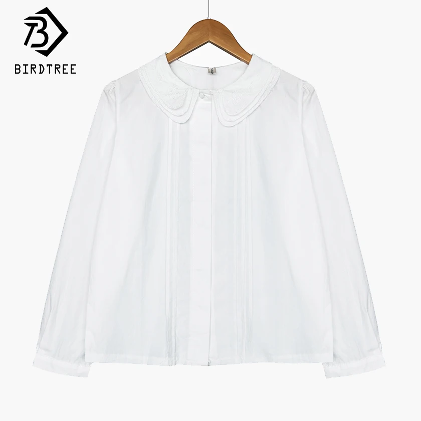 Offerte Moda Femminile di Cotone Bianco Camicette del Collare Del Peter Pan Casual Delle Signore Della Camicia Magliette e camicette Scuola Lavoro Camicetta Delle Donne Più Il Formato S XXL T58348 Economici Prezzo Online