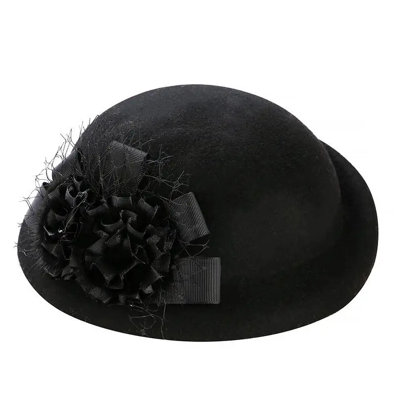 Offerte Meilleur 100% Lana Semplicità Donna Classic Lady Fascinator Capelli Cappellino a tamburello Floreale Feltro Cocktail Party Wedding Chiesa Fedora protezione Del Bacino Economici Prezzo Online.