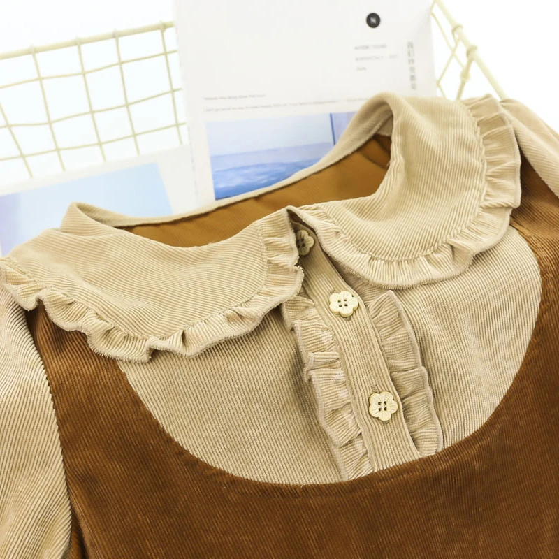 . Offerte Giapponese Mori Ragazza Kawaii Delle Donne del Vestito Sveglio di Modo Del Ricamo Dell orso Ruffle Abiti di Velluto A Coste Ragazze Falso in Due Vestito di Un Pezzo Miglior Prezzo Online.