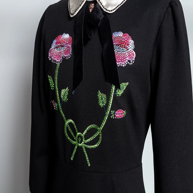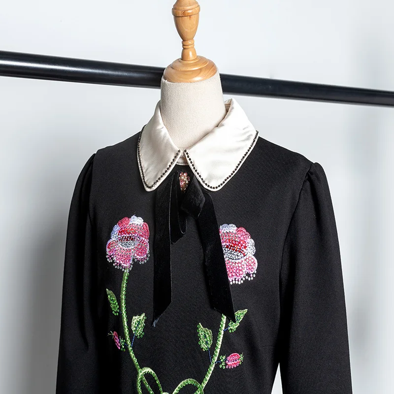 Comprare Meilleur Elegante Vestito Delle Donne 2018 Autunno Fiore Del Ricamo Little Black Vestito Collare Della Bambola Vestito Vestiti Delle Signore Piccolo Vento Profumato Vestito Da Partito Miglior Prezzo Online.