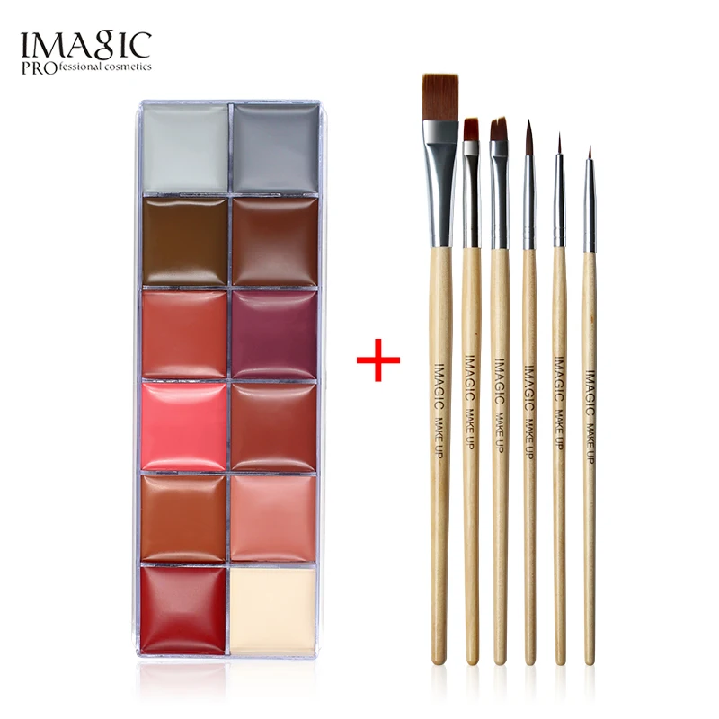 Offerte IMAGIC Halloween Viso Colori per il corpo Pittura A Olio di Arte Make Up Set di Strumenti Del Partito Del Vestito Operato 12 Flash Del Tatuaggio di Colore + 6 pezzi di Vernice Spazzola Miglior Prezzo Online