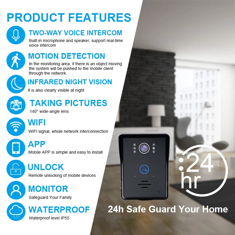 Comprare Saful Nuova Smart WiFi Video Citofono per Android e ios APP, di Tocco senza fili Video Telefono Del Portello per la casa campana con visione notturna Miglior Prezzo Online