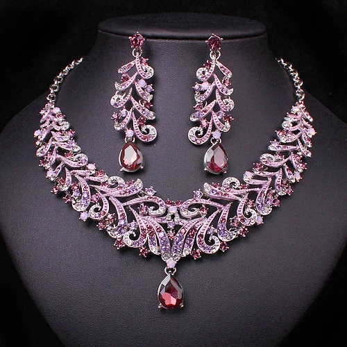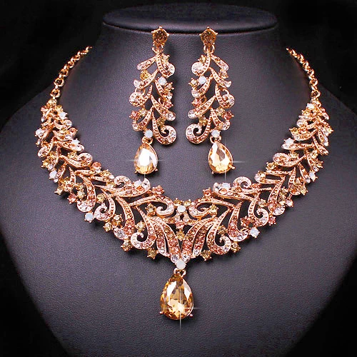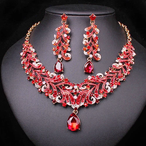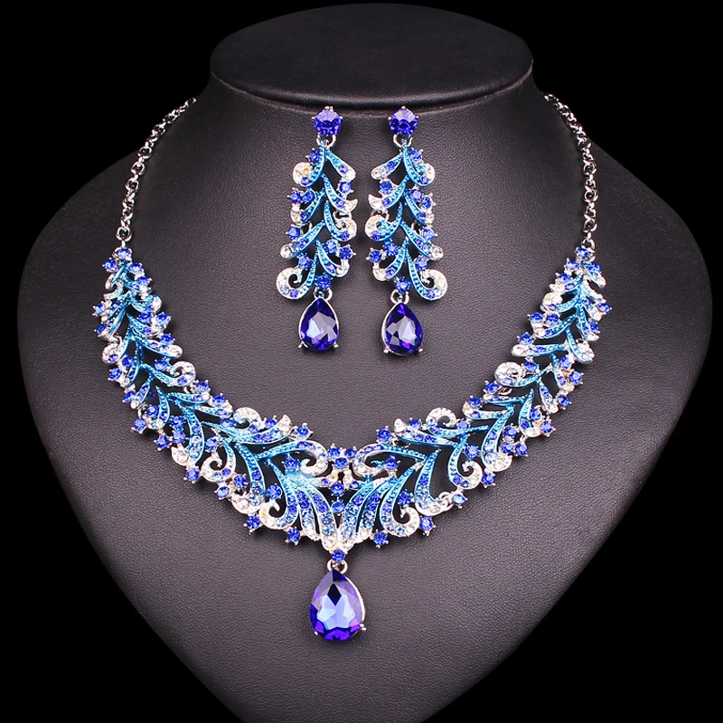 Comprare Di modo Blu Indiano di Strass Set di Gioielli Da Sposa per Le Spose Collana Da Sposa e Orecchini Set Decorazione Del Partito Del Costume per Le Donne Economici Prezzo Online