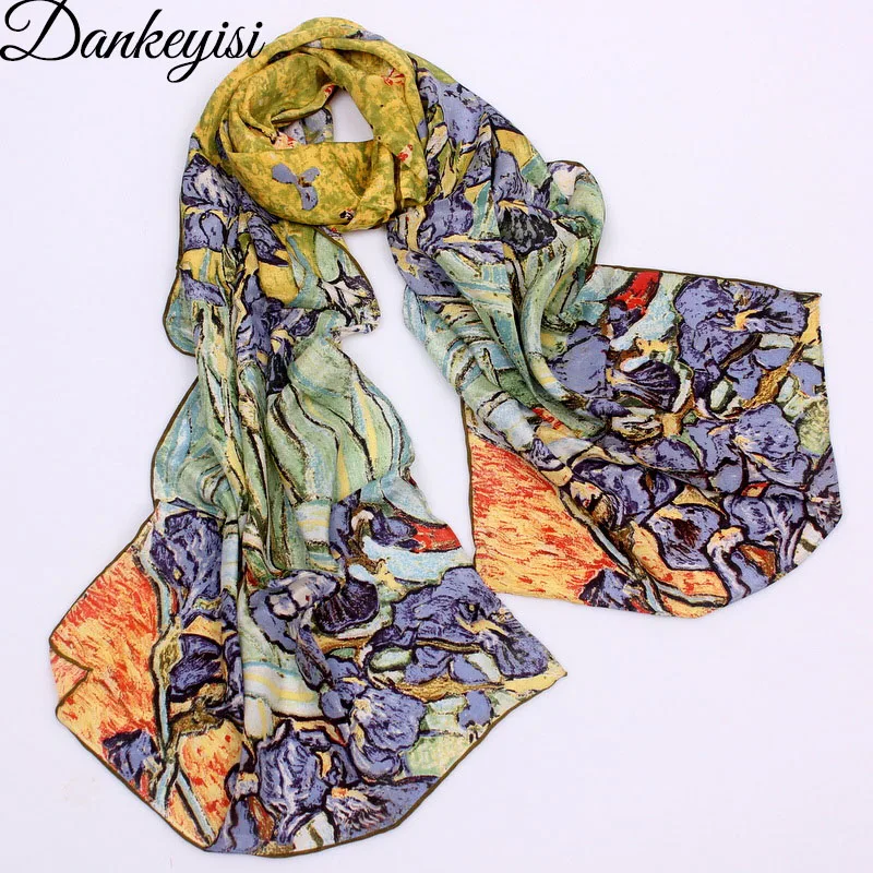 . Offerte DANKEYISI 2017 Van Gogh della Pittura A Olio Sciarpa di Seta Delle Donne e uomini Sciarpa 100% Seta Reale Sciarpe Donna Progettista di Marca di Lusso sciarpe Economici Prezzo Online.