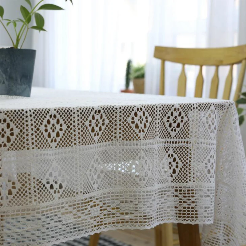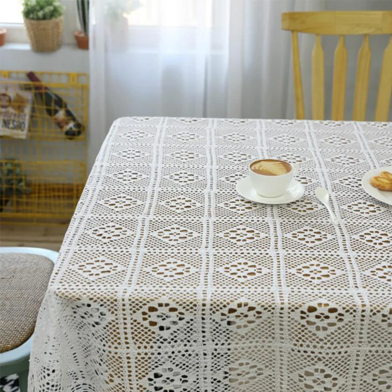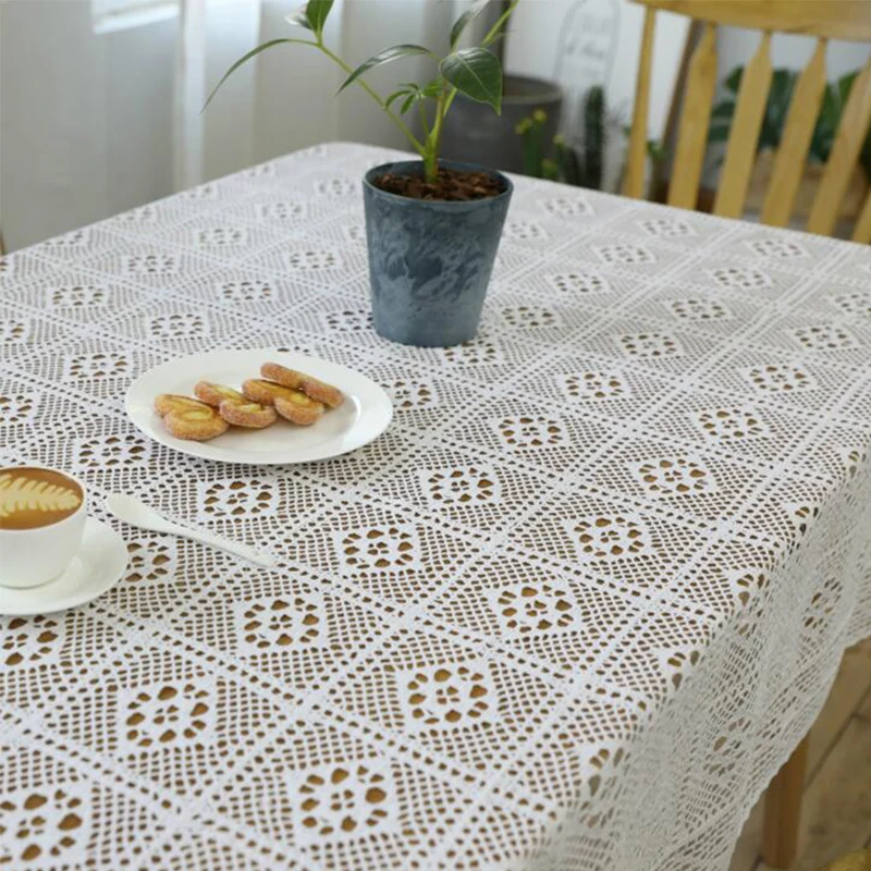 Comprare Di modo 100% Cotone di Lavoro A Maglia Tovaglia Bianca Crochet Cuciture Cava Tavolo Coperture Casa Cerimonia Nuziale Del Partito Decorazione Della Tavola Economici Prezzo Online