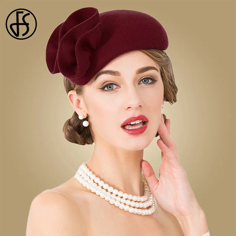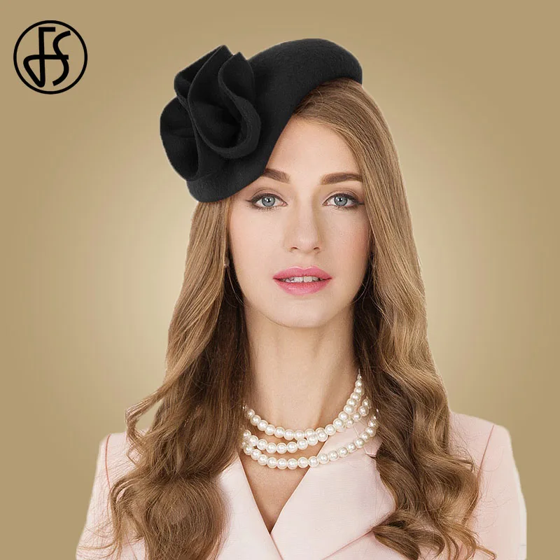 Offerte FS Delle Signore di Lana Da Cocktail Cappello di Cerimonia Nuziale Fascinator Cappelli Per Le Donne Formale Pillbox Feltro Tea Party Fiore Cappelli stile Fedora e borsalino Chapeau Femme Vintage Economici Prezzo Online