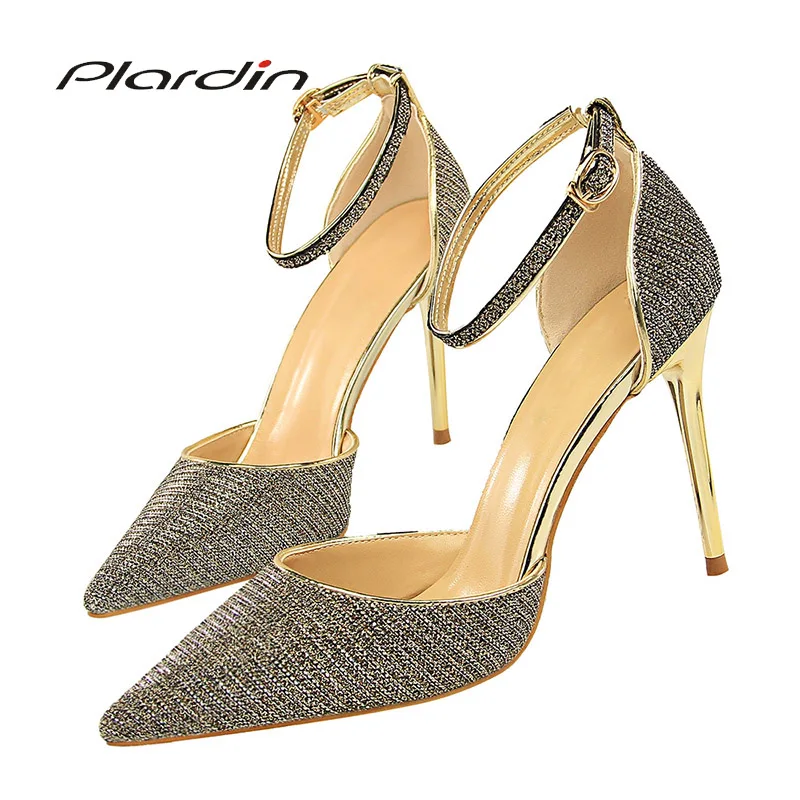 . Offerte Plardin Nuove Donne Cinturino Alla Caviglia di Cristallo Bling Decorazione In Metallo Scarpe Donna Scarpe A Punta Sottile Talloni delle donne Fibbia Pompe Ad Alta tacchi Economici Prezzo Online.