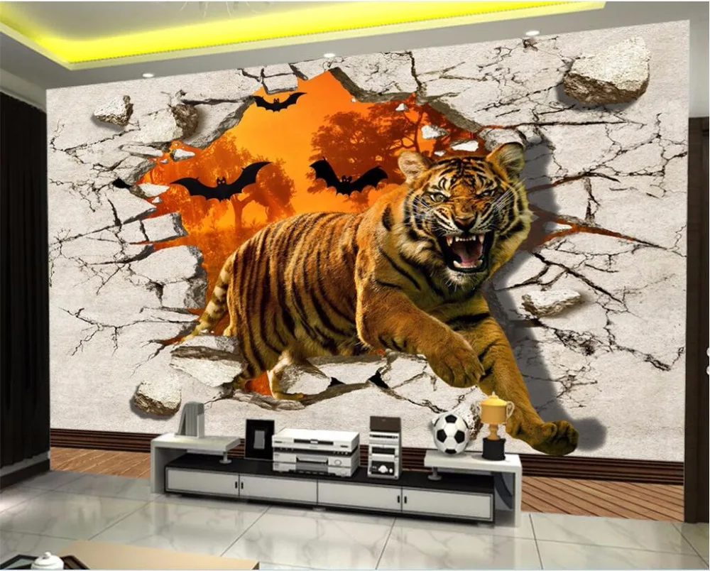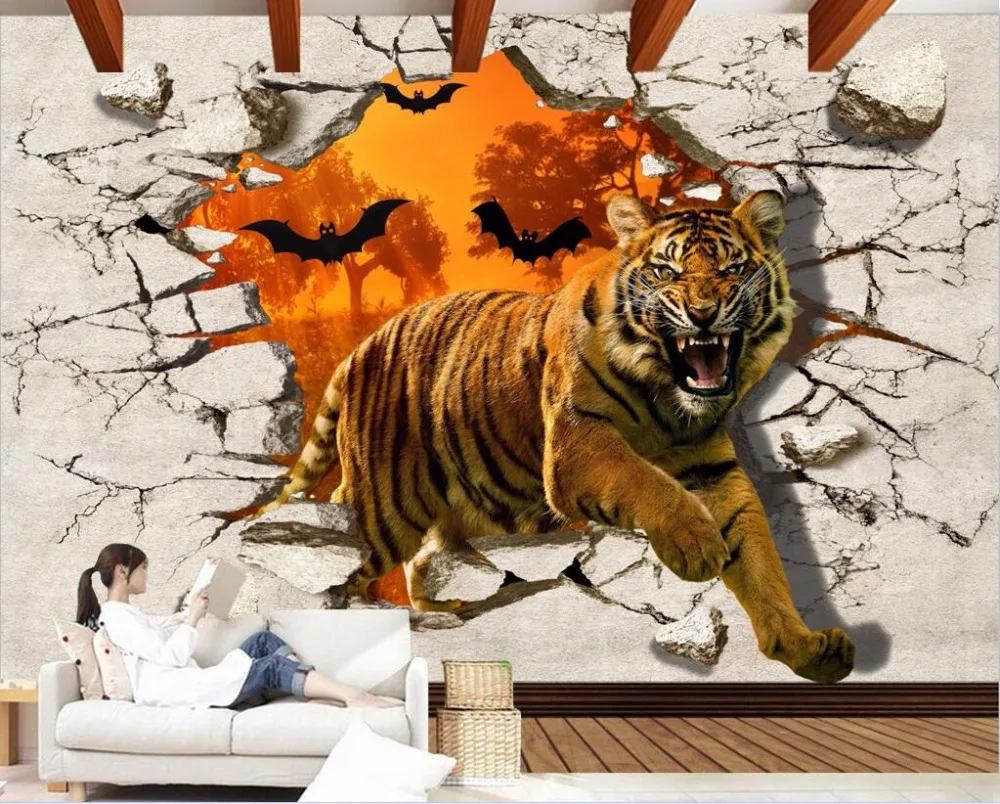 . Comprare 3d wallpaper foto personalizzata tigre feroce ha rotto la galleria paesaggio decor pittura 3d wall mural wallpaper per pareti 3 d Economici Prezzo Online.