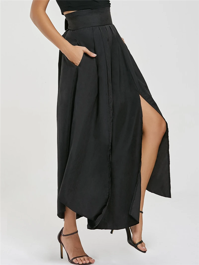 . Comprare Adogirl Solido Nero Delle Donne Maxi Gonna Bow Decor Tasche Fessura del Lato di Alta Vita Asymmetraical Casual Gonne Club Partito Sottoveste Miglior Prezzo Online.