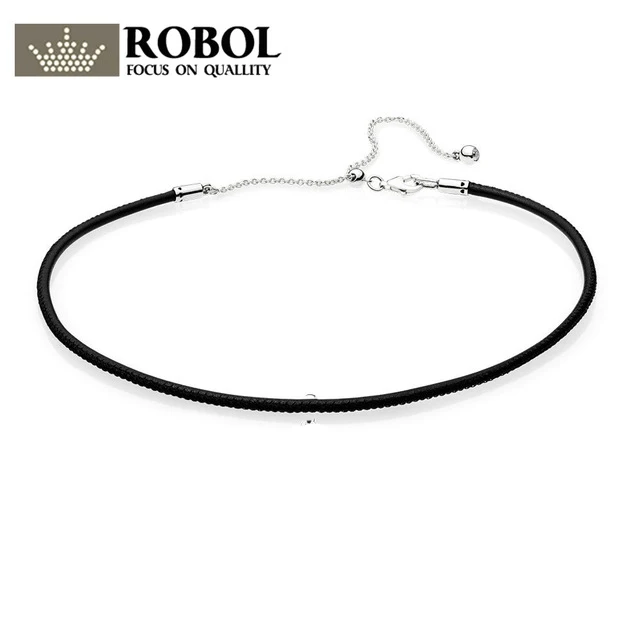 Offerte ROBOL PAN 925 Sterling Silver Nero In Pelle Choker Della Collana Del Pendente Della Piuma, Chiaro CZ Fai Da Te Originale Pendenti e Ciondoli Gioielli Economici Prezzo Online