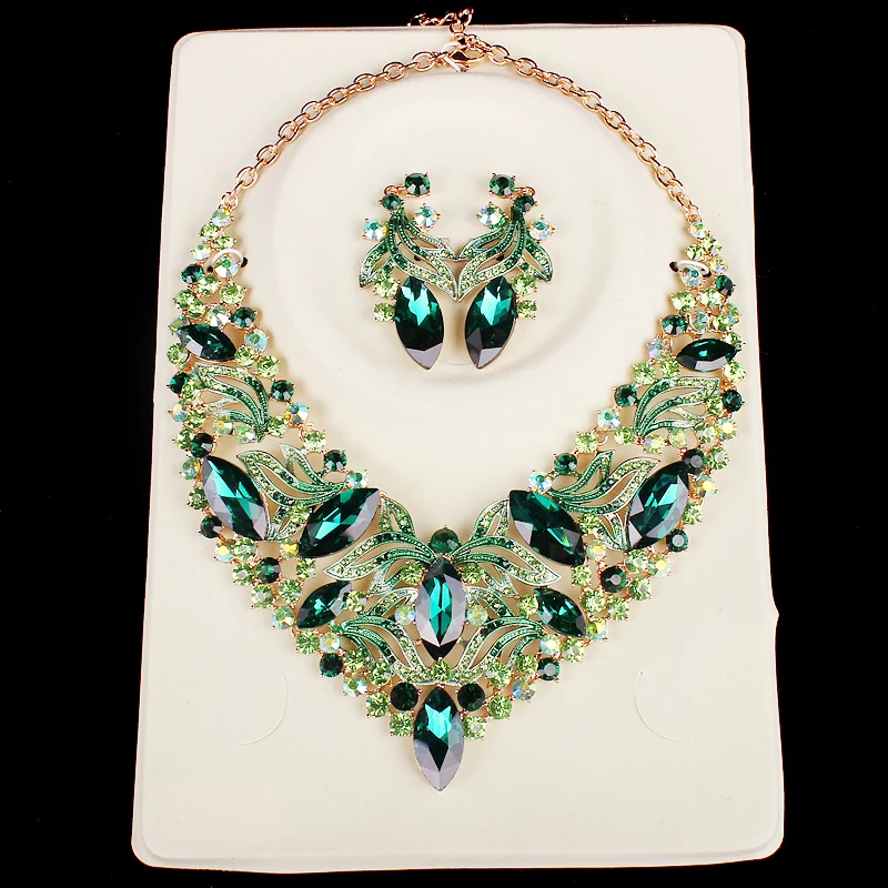 Comprare Foglio di modo di Set di Gioielli Da Sposa di Fidanzamento di Cerimonia Nuziale Degli Orecchini Della Collana set per Le Spose Decorazione Del Partito Del Costume Dei Monili Delle Donne Economici Prezzo Online