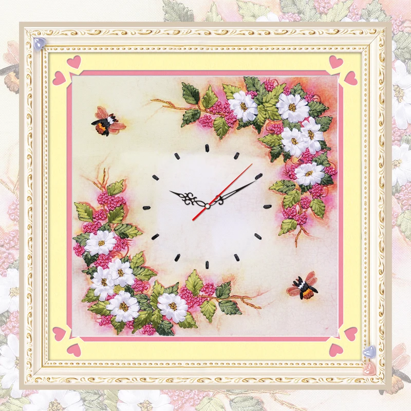 Comprare Meilleur FAI DA TE Nastri Fiore Del Ricamo Clock Decorativa della Tela di Canapa Pittura Color HD Stampa Ricamo Punto Croce Kit Home Decor C 0078 Miglior Prezzo Online.
